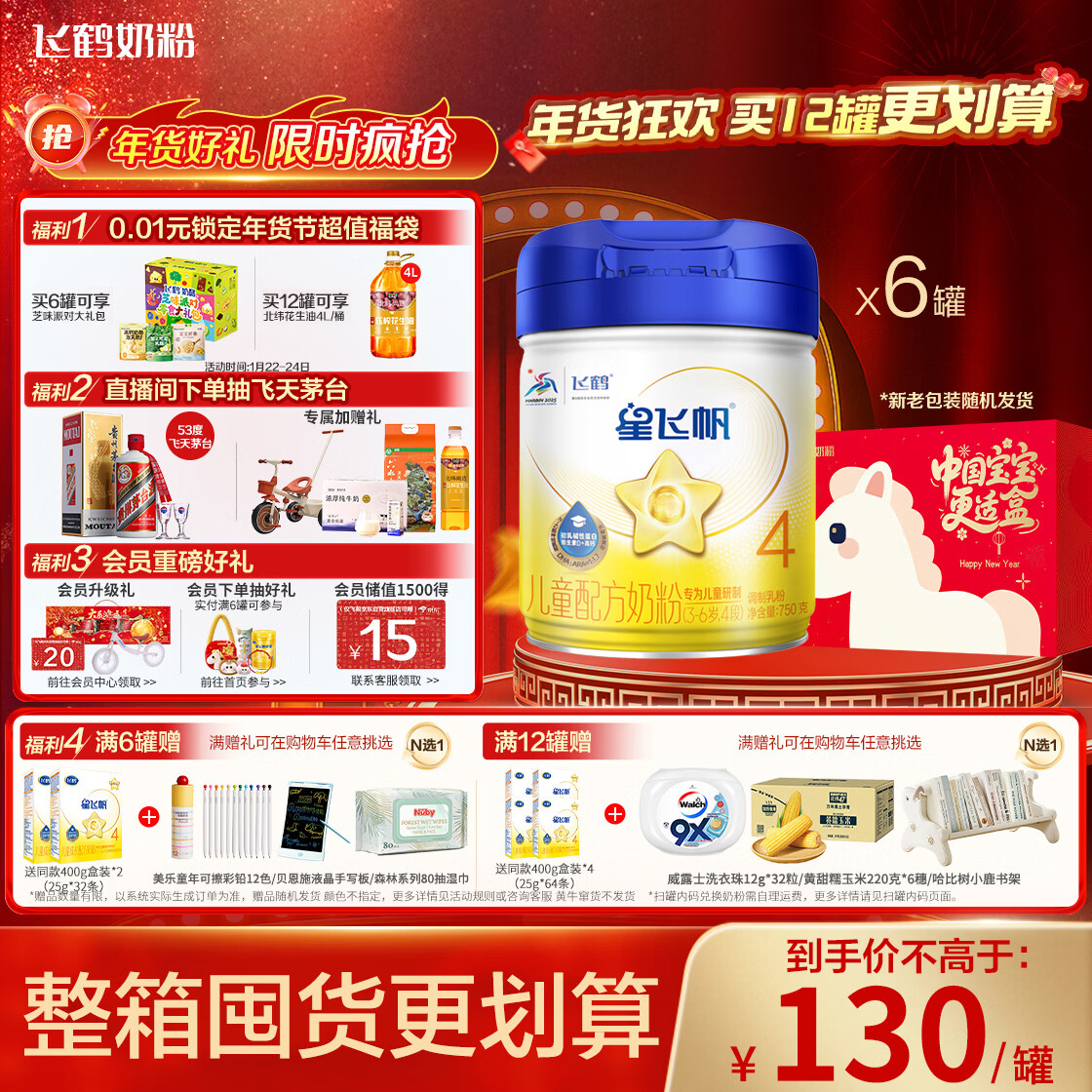 飞鹤星飞帆 CBP骨骼发育 儿童奶粉4段750g*6