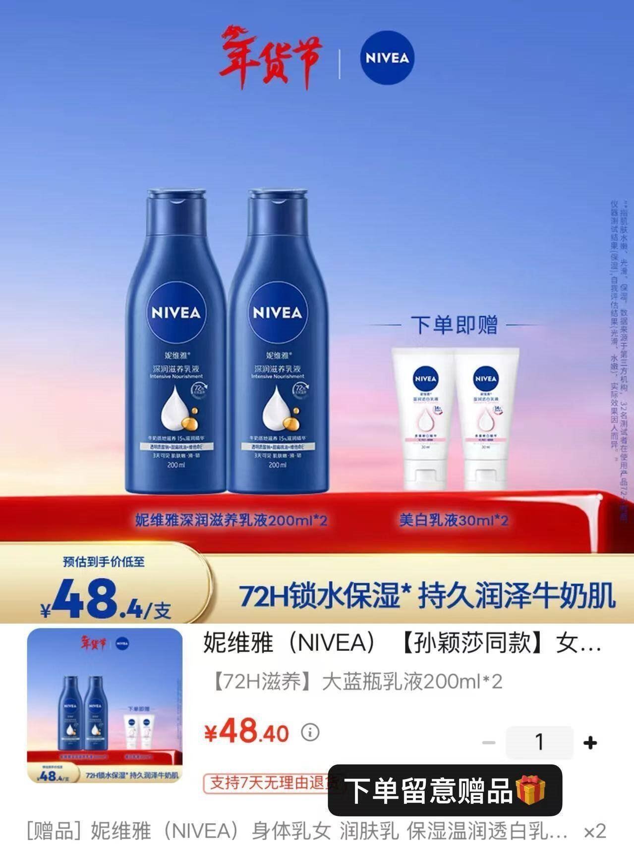 快妮维雅补货了 妮维雅 滋养身体乳200ml*2瓶 28.4亓,再贈同歀30ml*2支好单发报员2026年01月23日 18:160举报 ——快妮维雅补货了——妮维雅 滋养身体乳200ml*2瓶https://u.jd.com/ErmQqfK 28.4亓,再贈同歀30ml*2支*层层击退暗沉 14天持续美白复制文案