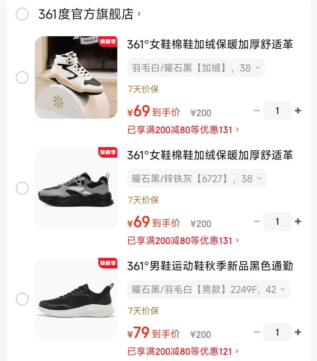 ②361度网面跑鞋79元