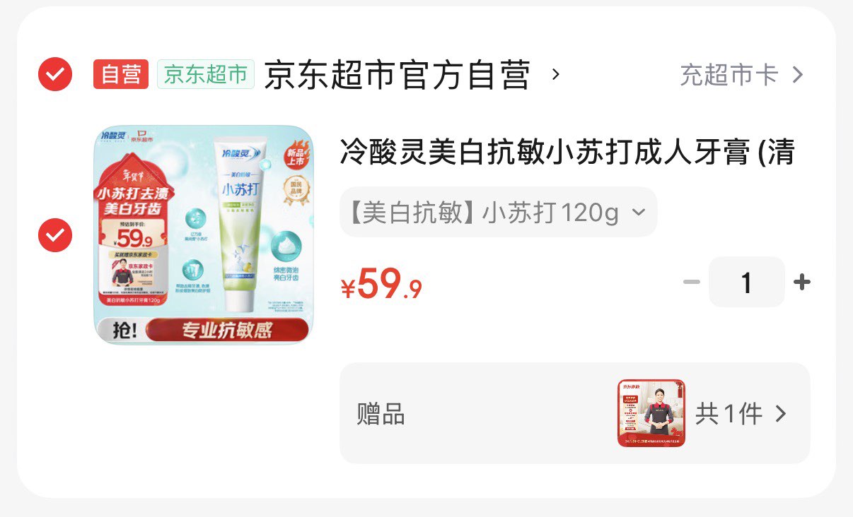 冷酸灵美白抗敏牙膏120g 拍下59.9亓 赠家政2小时好单发报员2026年01月23日 19:040举报 冷酸灵美白抗敏牙膏120g 拍下59.9亓 赠家政2小时https://u.jd.com/E1mlYPV 复制文案