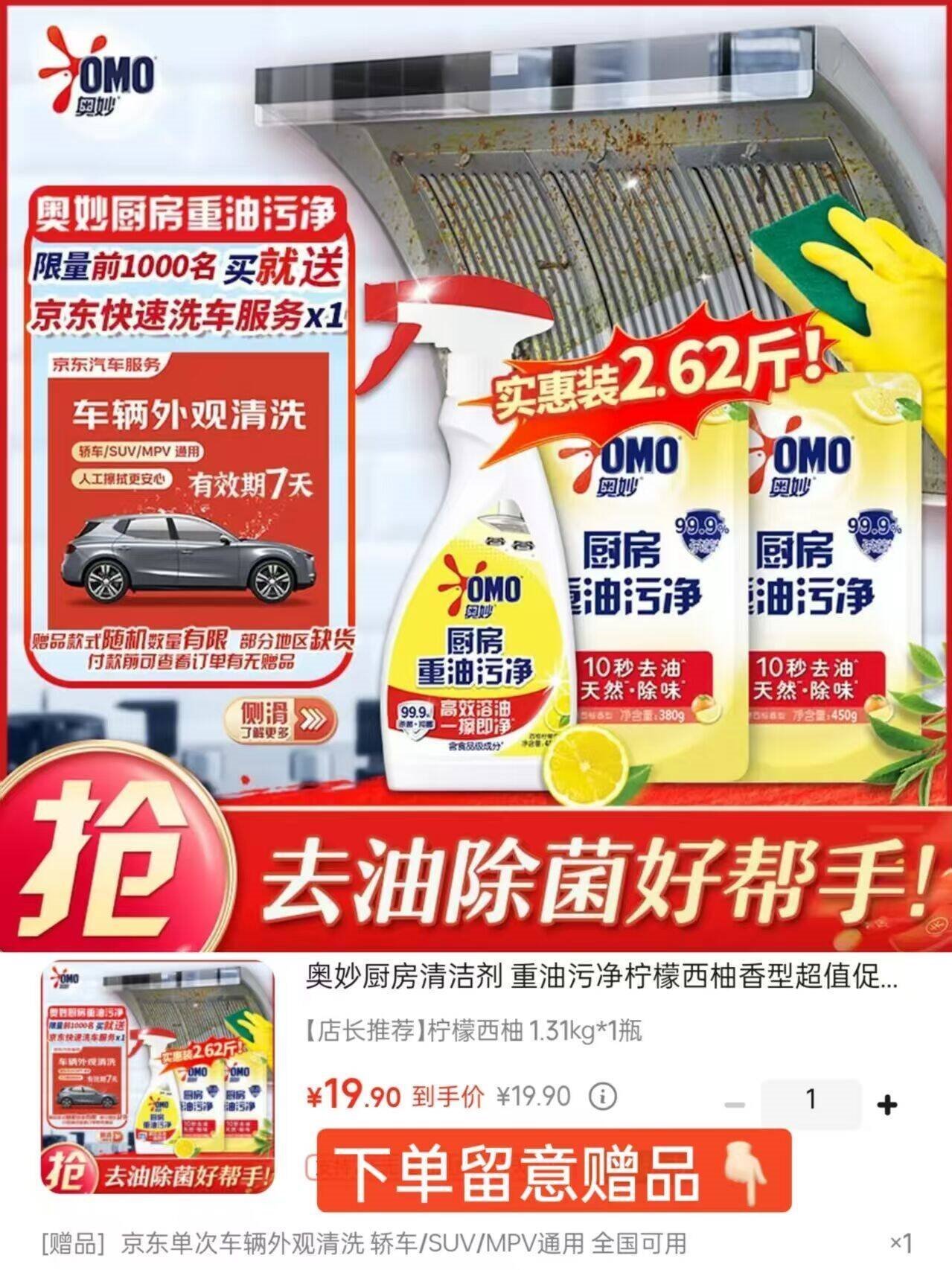 奥妙油污净O撸 自营 厨房重油污净2.62斤 19.9亓 U,Plus无限包邮好单发报员2026年01月23日 19:280举报 ——奥妙油污净O撸——【自营】厨房重油污净2.62斤https://u.jd.com/EDmEggD19.9亓 U,Plus无限包邮*赠忦值19.9亓京东洗車服务*等于油污净白送 真的太划.算了复制文案