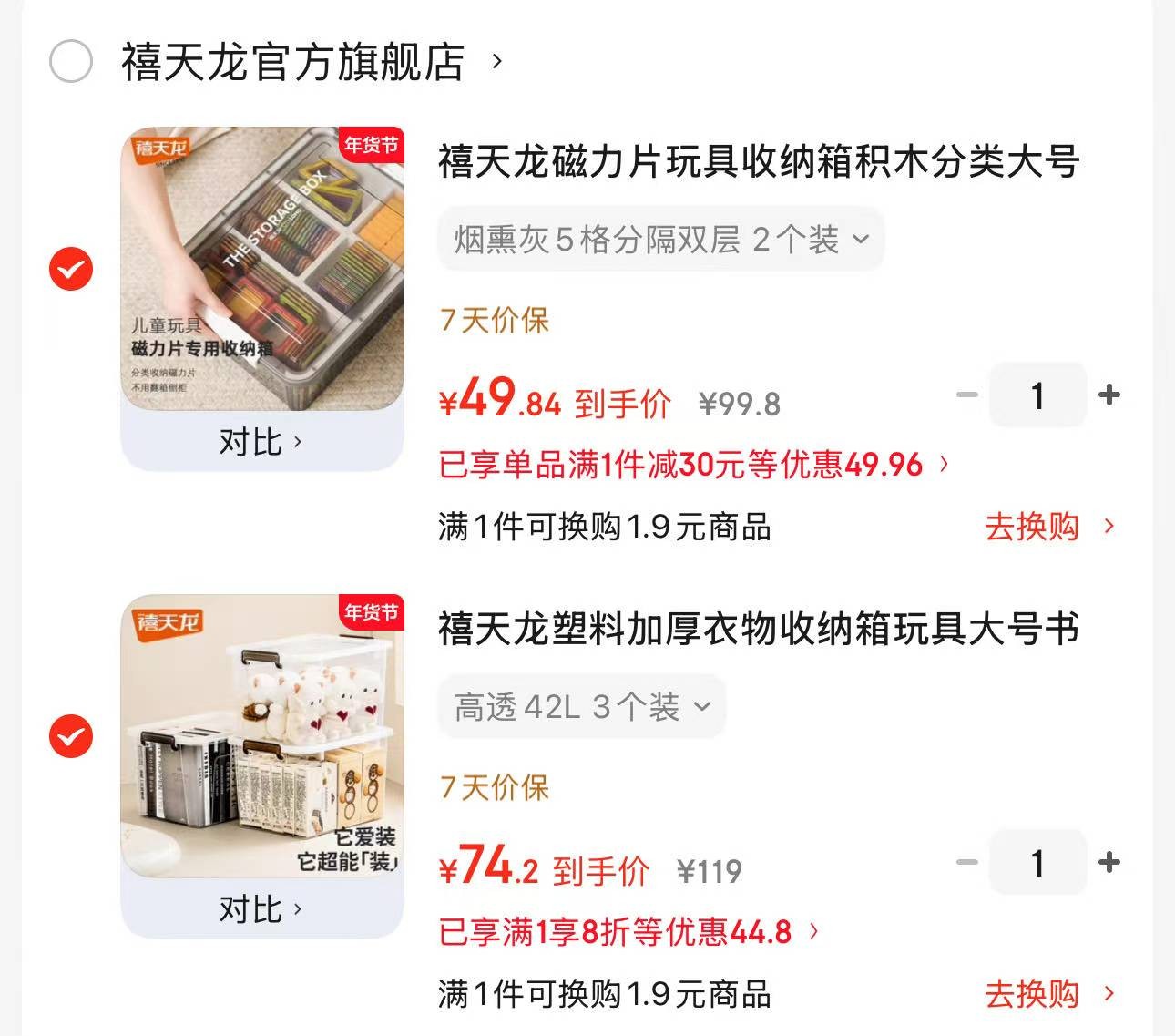 禧天龙 磁力片玩具收纳箱 5格分隔双层 2个装【49.8】