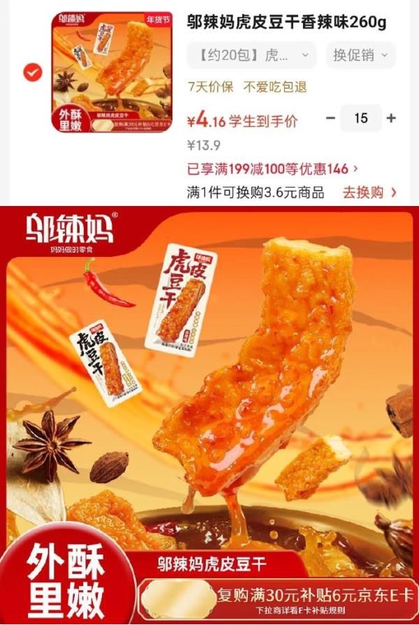 邬辣妈虎皮豆干香辣味260g 袋装