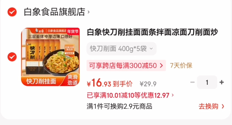 白象快刀削面 400g*5袋