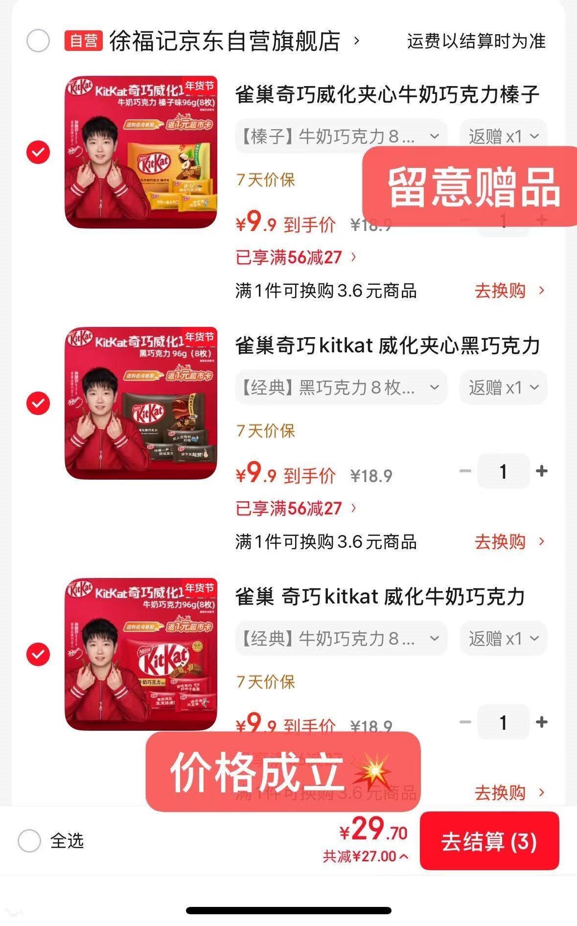【自营】奇巧威化巧克力8枚