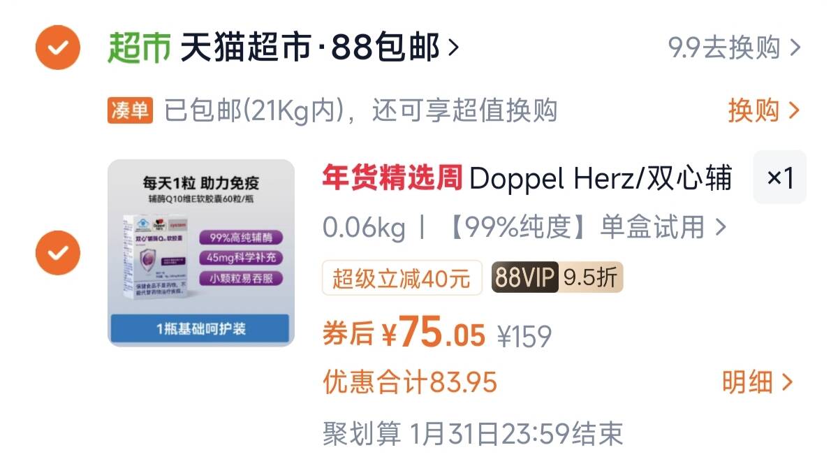 德国双心辅酶Q10 增强免疫力抗氧化一盒79元