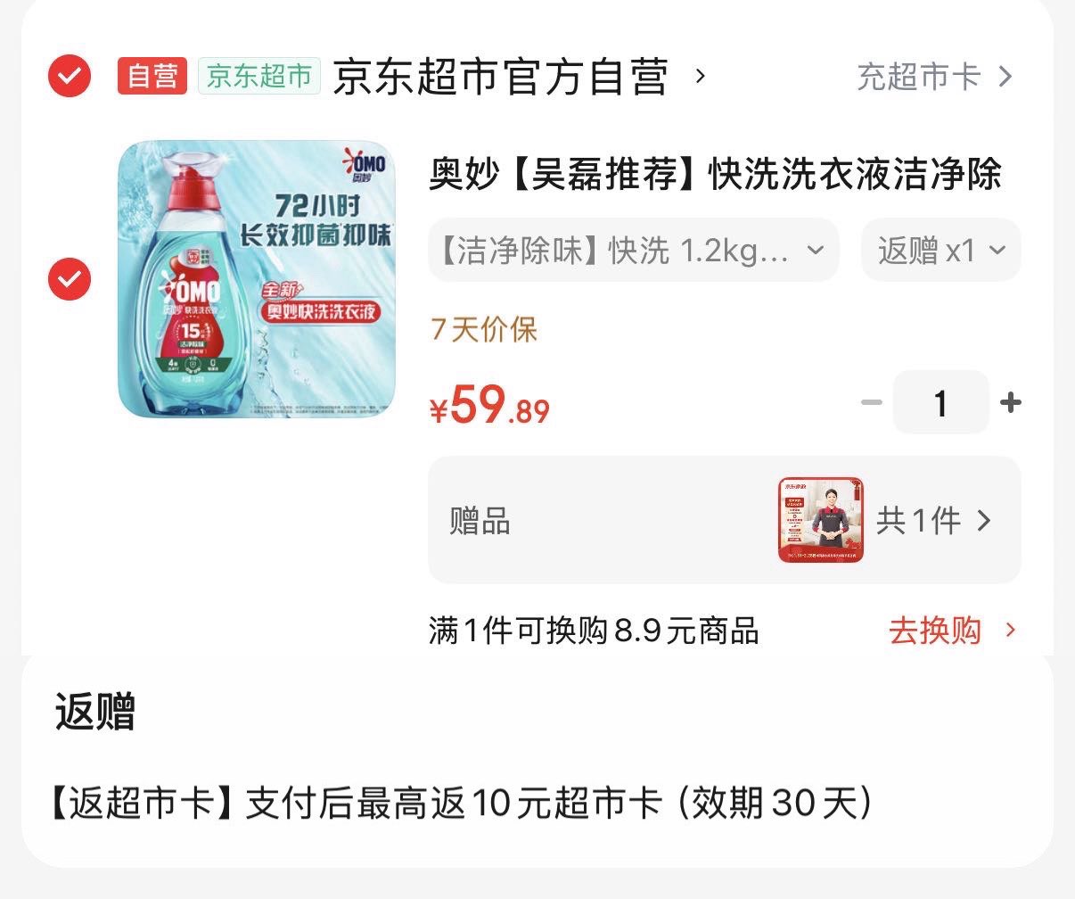 奥妙速净快洗洗衣液1.2kg 拍下59.9亓 反10超市卡 再赠家政服务2小时好单发报员2026年02月05日 11:220举报 奥妙速净快洗洗衣液1.2kg 拍下59.9亓 反10超市卡再赠家政服务2小时https://u.jd.com/JgUxOcq复制文案