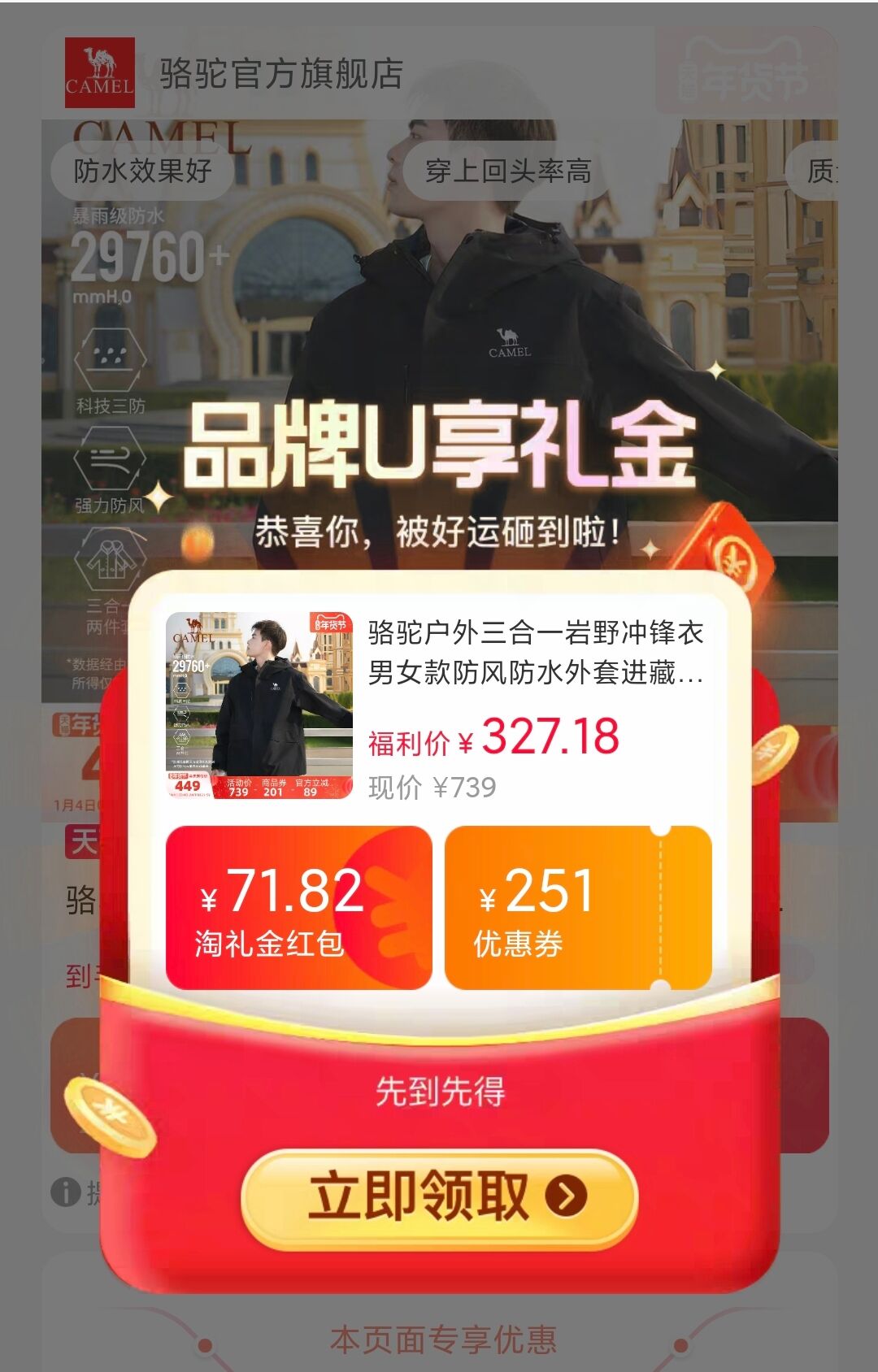 ②速度领礼金 加购一件 270-290元左右到手 骆驼官方旗舰店好单发报员2026年02月05日 11:230举报 ②速度领礼金 加购一件270-290元左右到手【骆驼官方旗舰店】骆驼户外三合一岩野冲锋衣男女款防风防水外套https://m.tb.cn/h.7Gzxm0L复制本消息 打开桃宝查看复制文案