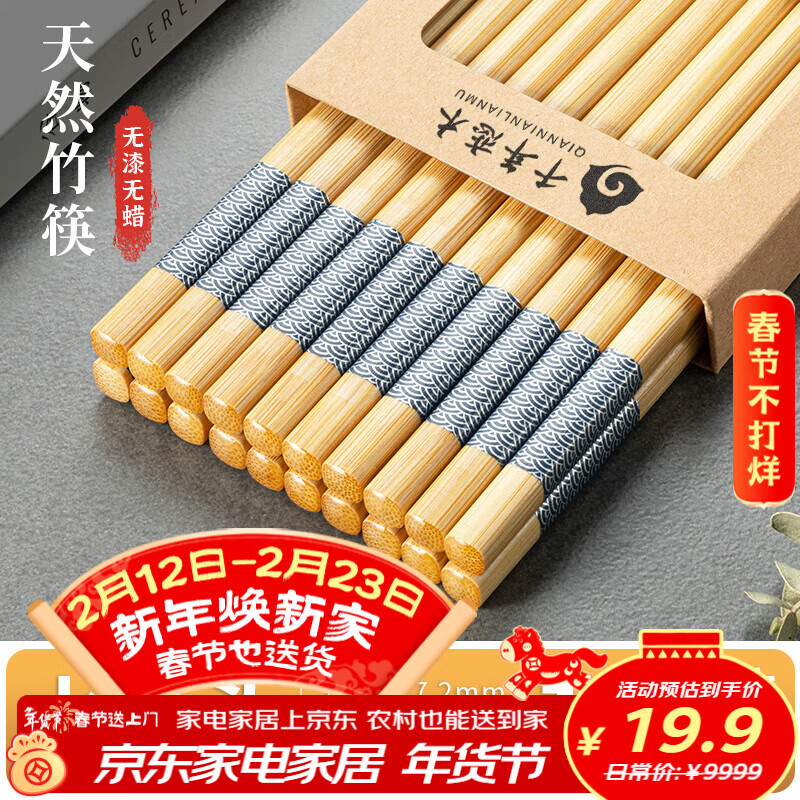 9.95元 防霉防滑竹楠筷10双