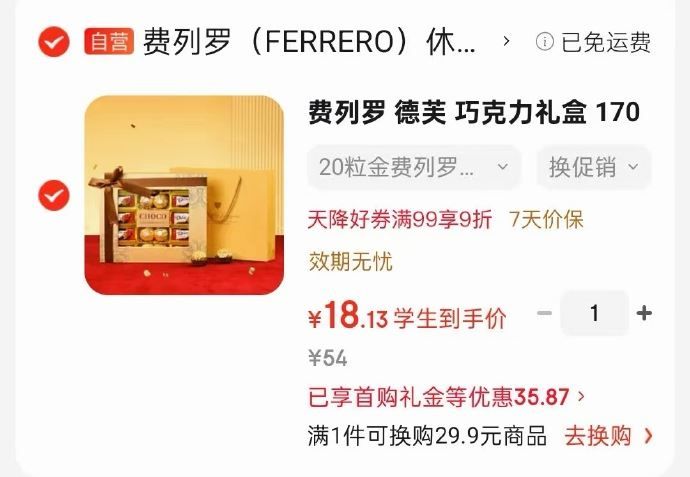 费列罗10粒 德芙10粒 巧克力礼盒 170g