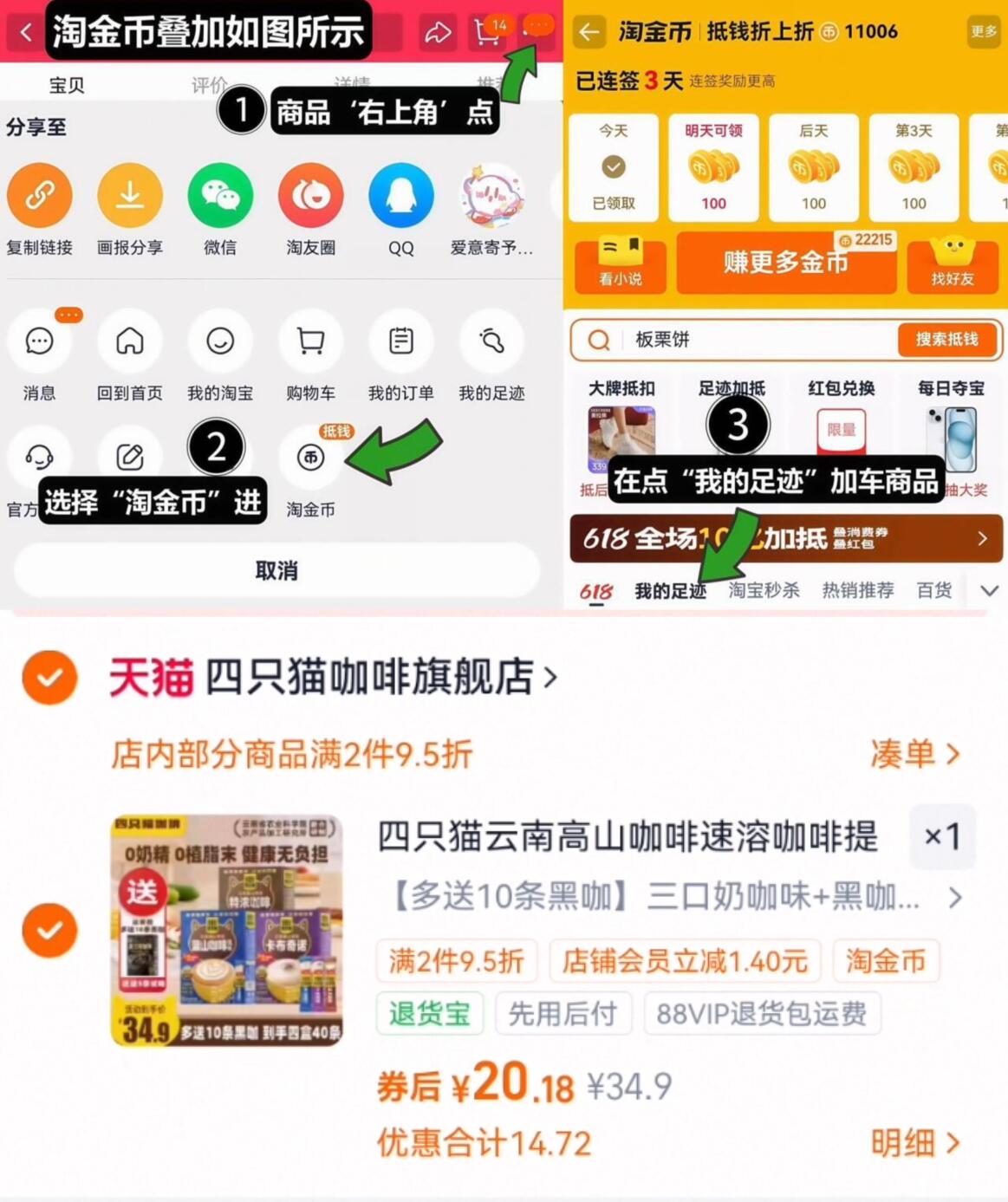 好圿快拍折0.5亓/条 拍下20亓!叠3.3淘金币 四只猫 高山速溶咖啡40条 好单发报员 2026年02月12日 00:34 0 举报 好圿快拍折0.5亓/条拍下20亓!叠3.3淘金币【四只猫】高山速溶咖啡40条1、如图点右上角3个点,选淘金币2、选我的足迹-找到商品拍下https://m.tb.cn/h.7wby1p2 复制文案