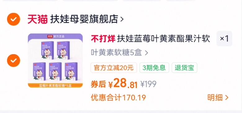 5.7亓/盒史低拍下28.8亓 扶娃 蓝莓叶黄素软糖30粒*5盒 叶黄素+蓝莓=眼睛的守护神 好单发报员 2026年02月12日 00:40 0 举报 5.7亓/盒史低拍下28.8亓【扶娃】蓝莓叶黄素软糖30粒*5盒叶黄素+蓝莓=眼睛的守护神https://m.tb.cn/h.7EL5eg9 复制文案