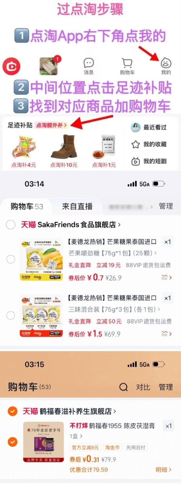点淘app-商城-足迹,拍下【1.5】( 1包选项0.7 )
