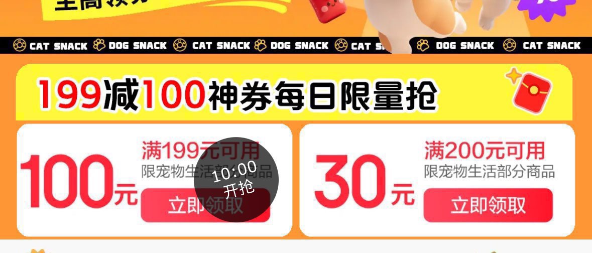 10点 宠物199-100商品券