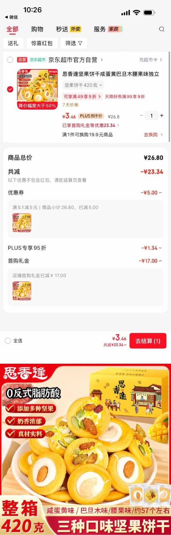 思香逢坚果饼干咸蛋黄巴旦木腰果味独立包装420克 砸5券3首单 3.46好单发报员2026年02月12日 10:270举报 思香逢坚果饼干咸蛋黄巴旦木腰果味独立包装420克砸5券3首单【3.46】 https://u.jd.com/lgavN34 复制文案