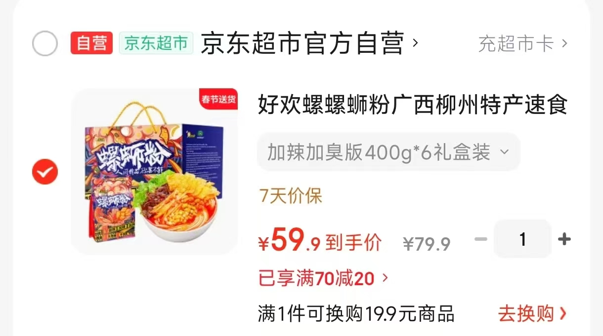 好欢螺 螺蛳粉广西柳州特产 加辣加臭版400克*6袋装礼盒【59.9】