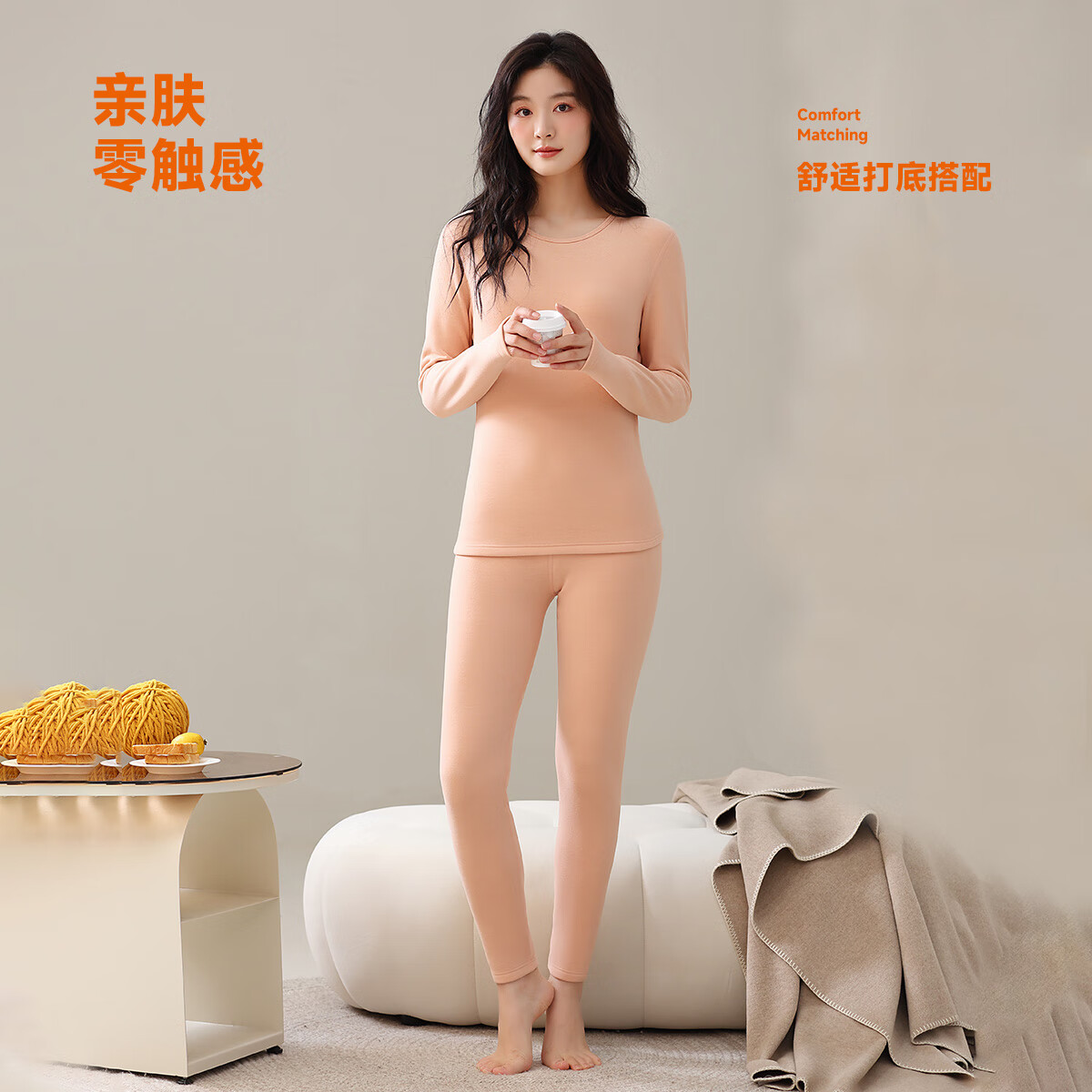 香蜜闺秀 女士纯色加厚保暖内衣套装【39】