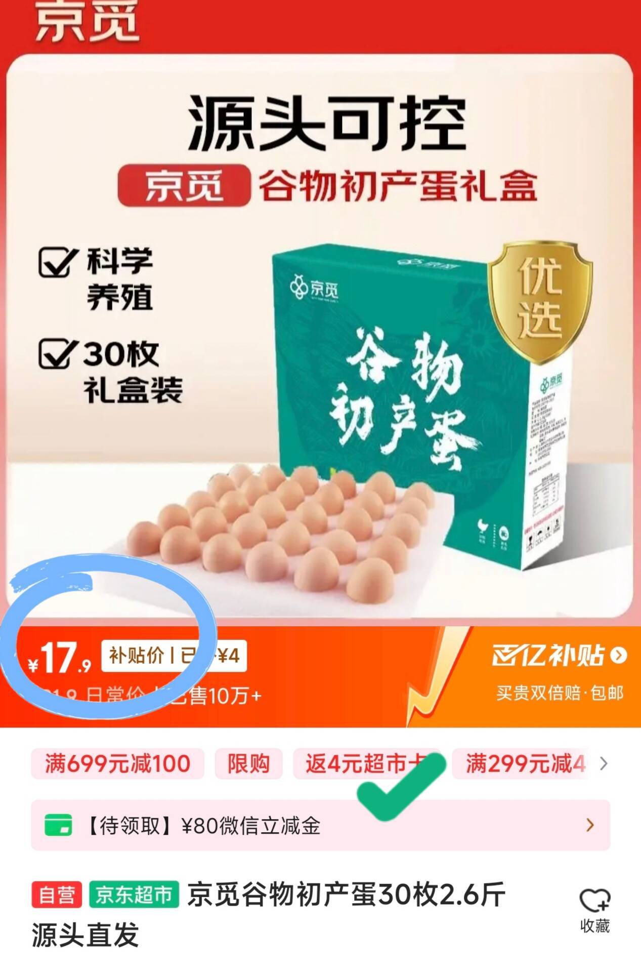 京觅谷物初产蛋30枚2.6斤 付17.9反4超市卡=13元.9好单发报员2026年02月12日 14:300举报 京觅谷物初产蛋30枚2.6斤付17.9反4超市卡=13元.9https://u.jd.com/lram8fR复制文案