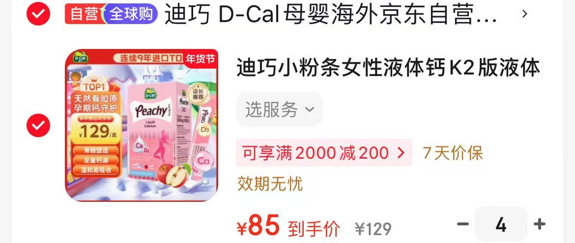 迪巧 小粉条女性液体钙K2版液体钙18ml*20条/盒,拍4件 折85/件