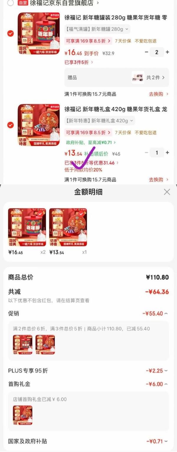 徐福记 新年糖礼盒420g,如图凑后【13.54】
