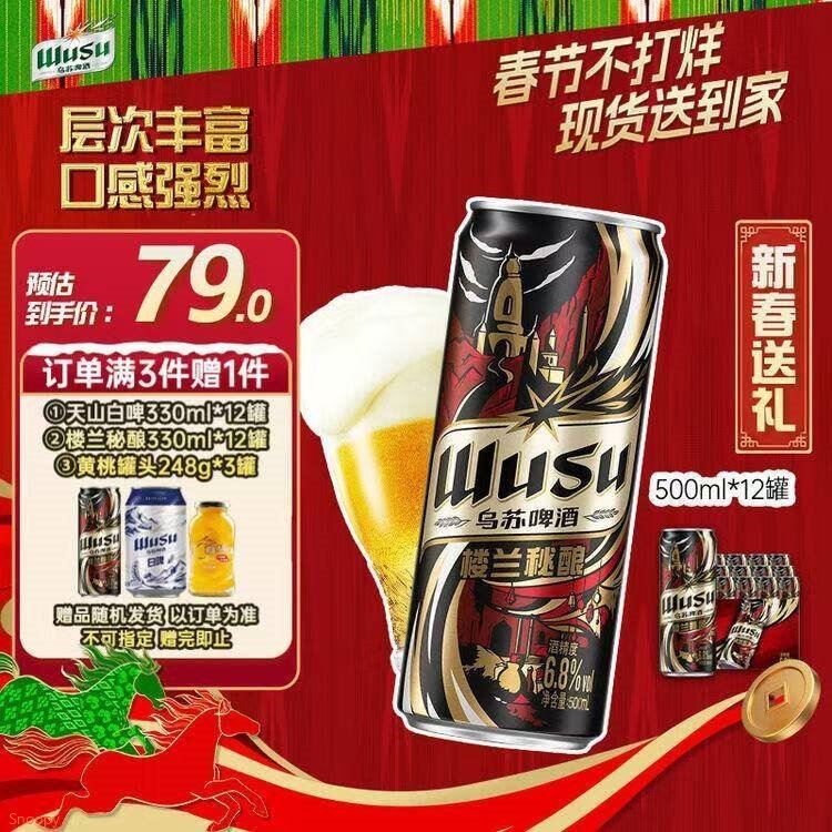 乌苏春节不打烊 自营 乌苏 楼兰秘酿 精酿啤酒500ml*12罐好单发报员2026年02月12日 23:140举报 ——乌苏春节不打烊——【自营】乌苏 楼兰秘酿精酿啤酒500ml*12罐https://u.jd.com/l6gkrJQ 买2件118.2亓,新客减10亓*plus低至100.8亓 折4.2/罐复制文案