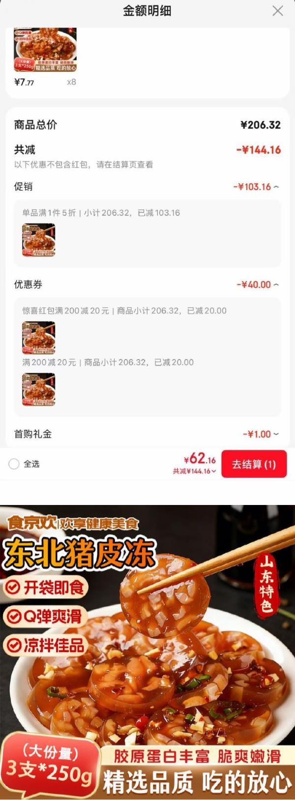 食京欢猪皮冻水晶250g*3支,每件7.77