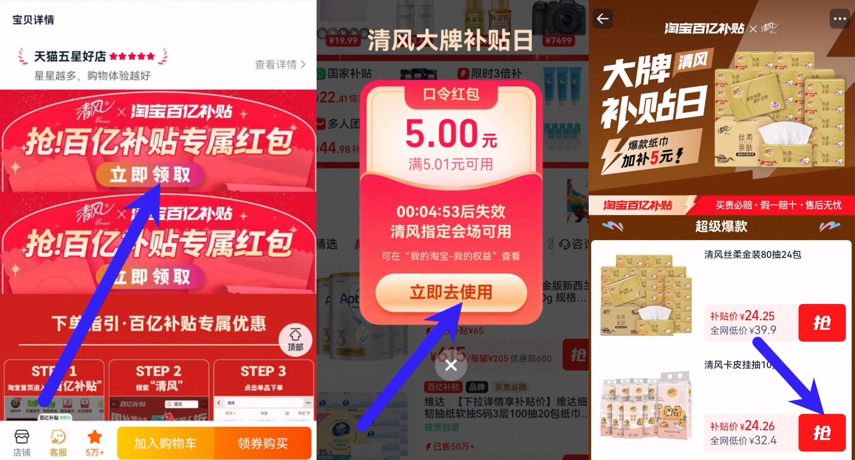 2亓/提清风悬挂式抽纸 24.2亓到手 250抽 10提 送2挂钩 1、收藏宝贝 如图下拉进详情页好单发报员2026年02月19日 18:290举报 2亓/提清风悬挂式抽纸24.2亓到手 250抽 10提 送2挂钩1、收藏宝贝 如图下拉进详情页2、弹出5亓虹包 点:立即使用3、跳转补贴页面找到商品拍下https://m.tb.cn/h.7yt6mpd复制文案