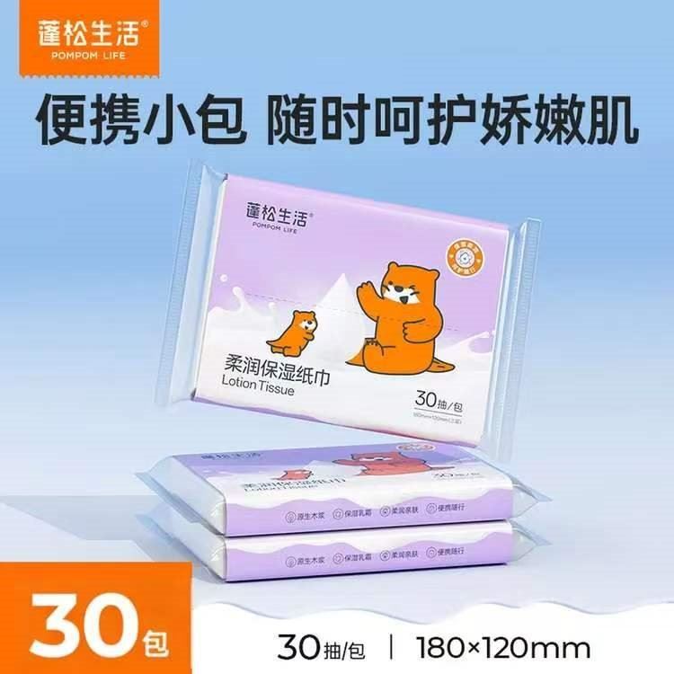 蓬松生活 乳霜纸30抽*30包 16.9亓,三层柔厚 小巧便携