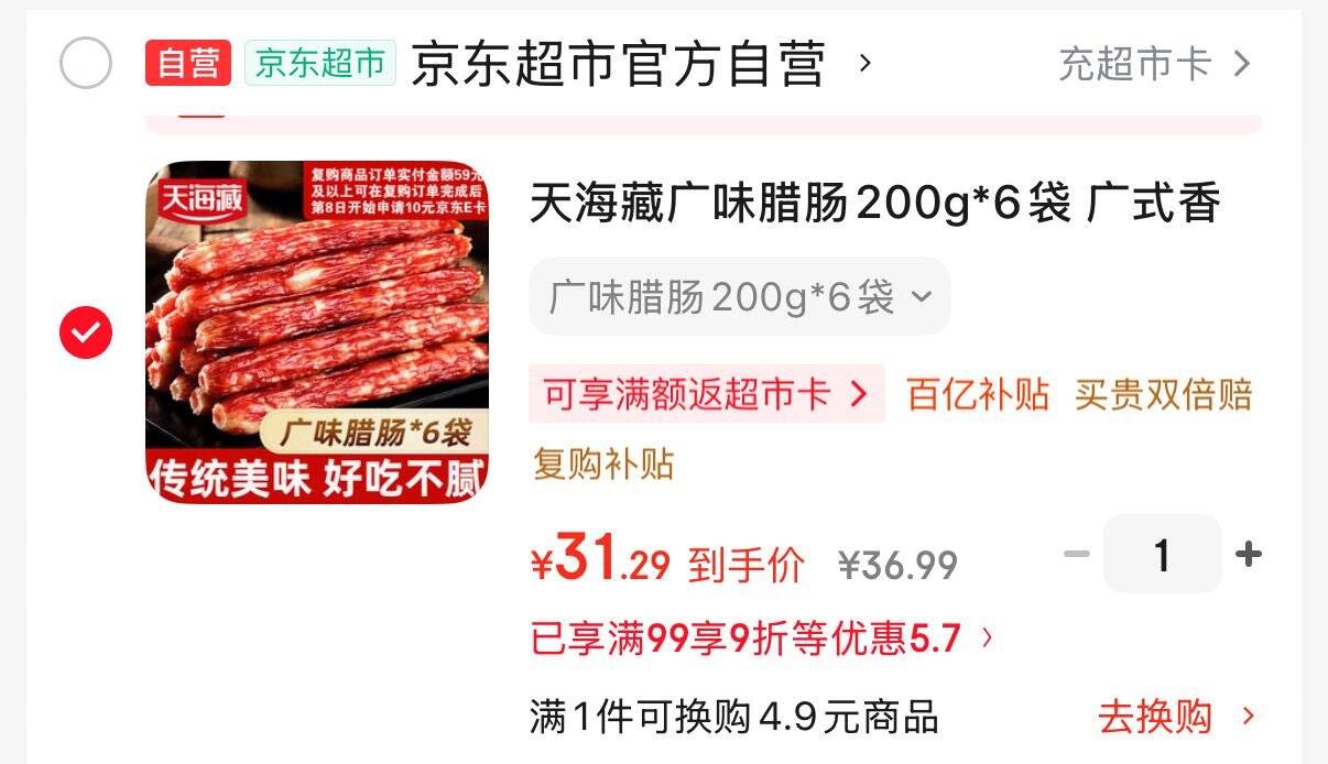 天海藏 广式腊肠 200g*6袋