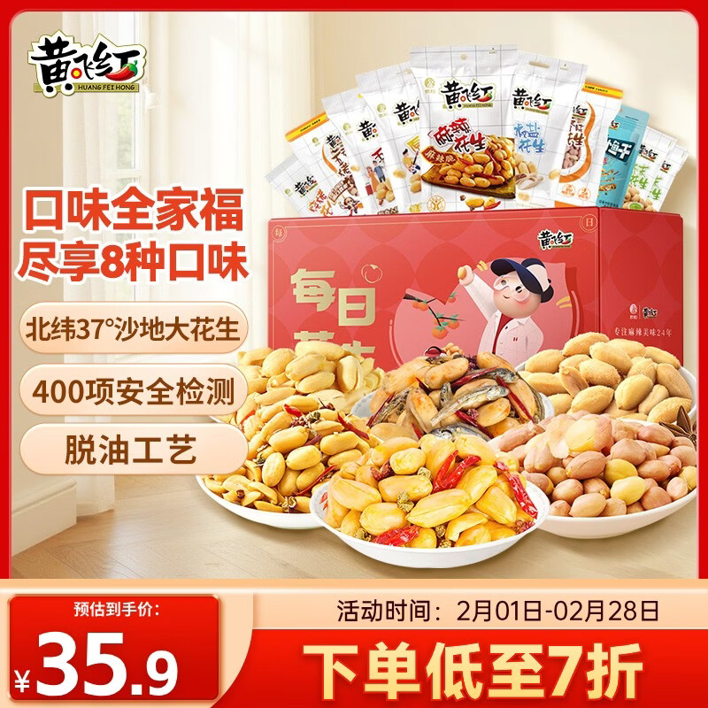【JD自营】黄飞红 全口味花生全家福礼盒 621g/箱
