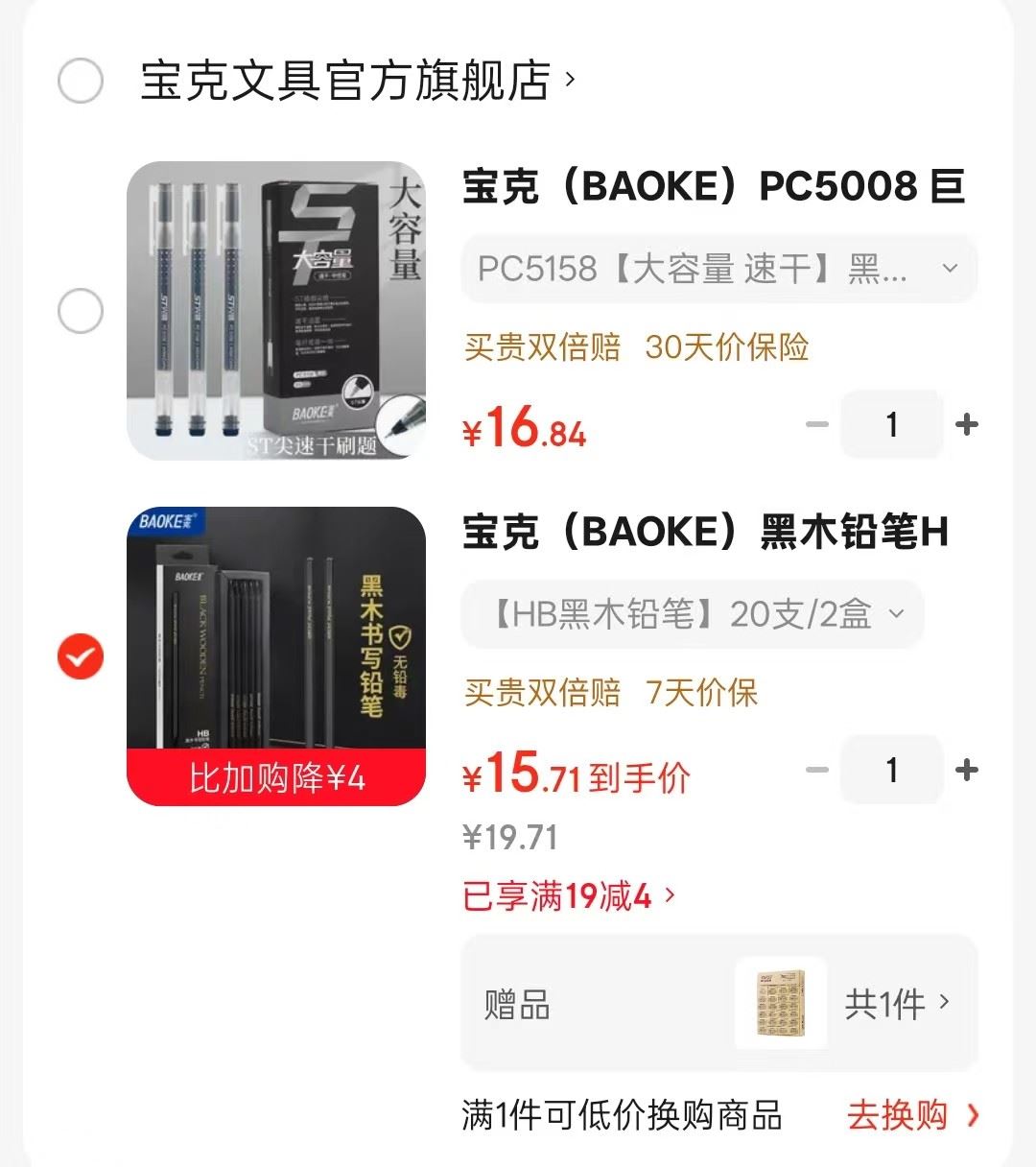 宝克 (BAOKE)黑木铅笔HB 六角笔杆20支/2盒【15.7】 赠 橡皮5块