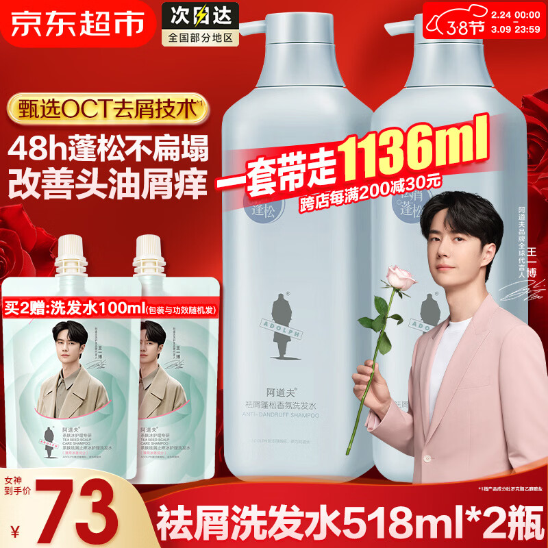 阿道夫 祛屑控油洗发水518ml*2瓶