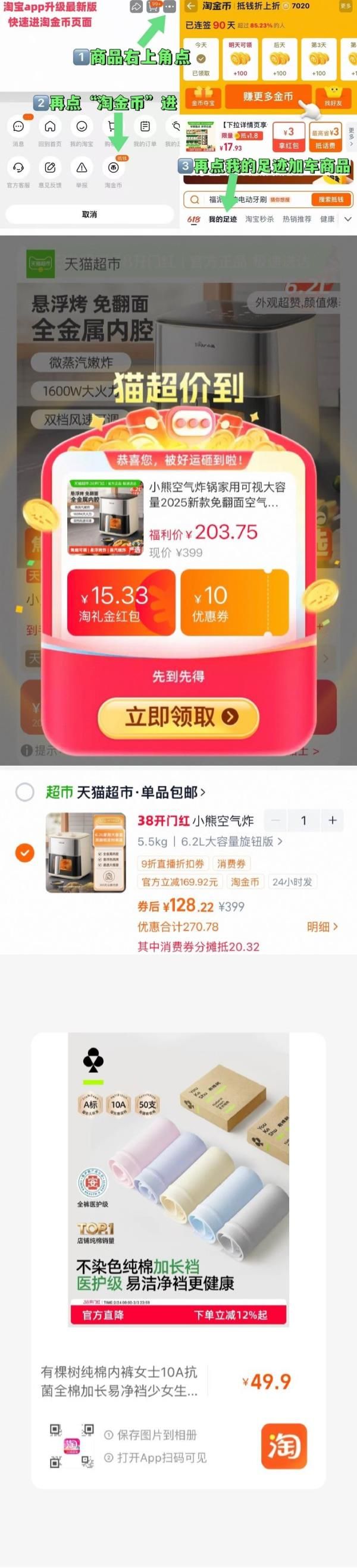 ③淘金币页面我的足迹再加购(抵23.45)