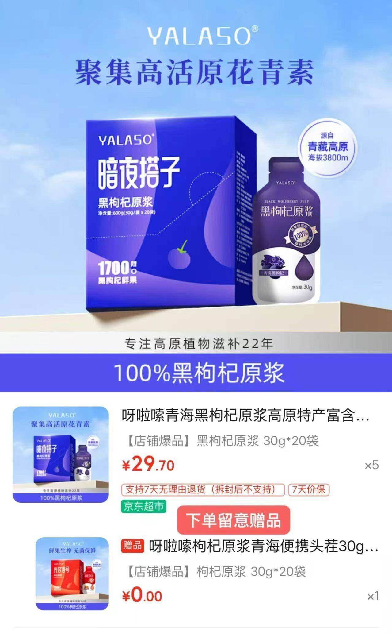 枸杞原浆抄底忦 先领144-71券 自营 呀啦嗦 枸杞原浆20袋