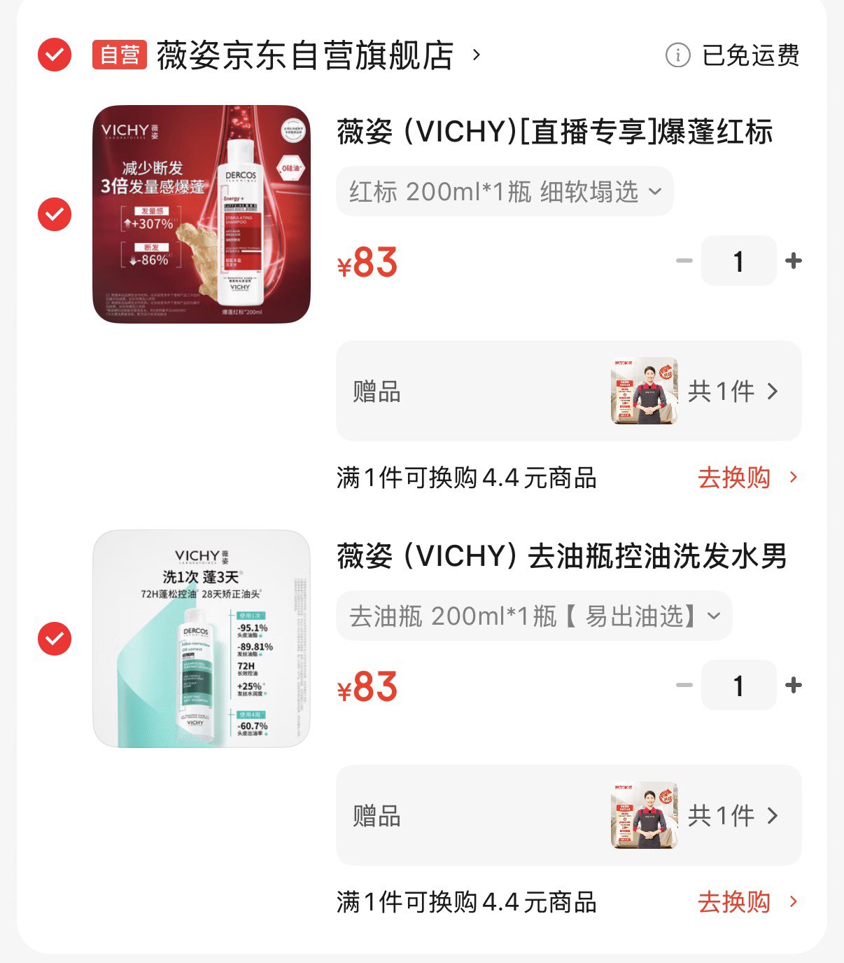 薇姿爆蓬红标洗发水200ml