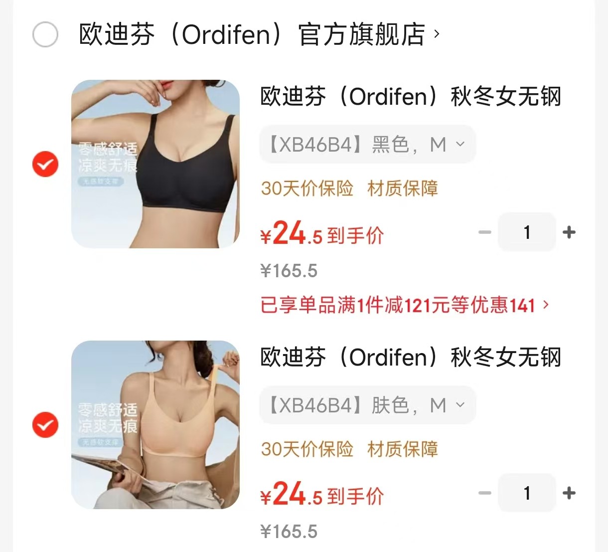 欧迪芬 (Ordifen)秋冬女无钢圈文胸,任选2件【49】