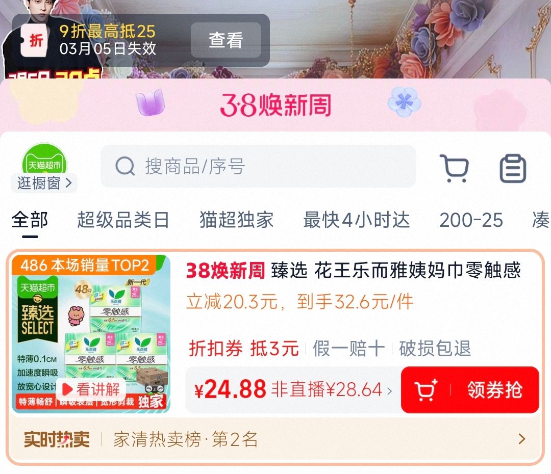 1.猫超搜:卫生巾 领3品牌jin