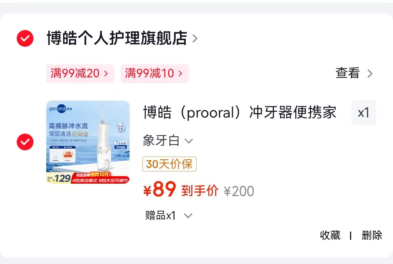 博皓 (prooral)冲牙器便携家用洗牙器 F40 象牙白【89】晒图返10元