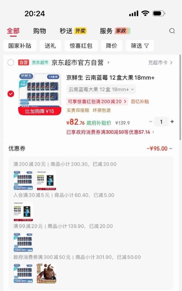 京鲜生 云南蓝莓 12盒大果18mm 125g/盒