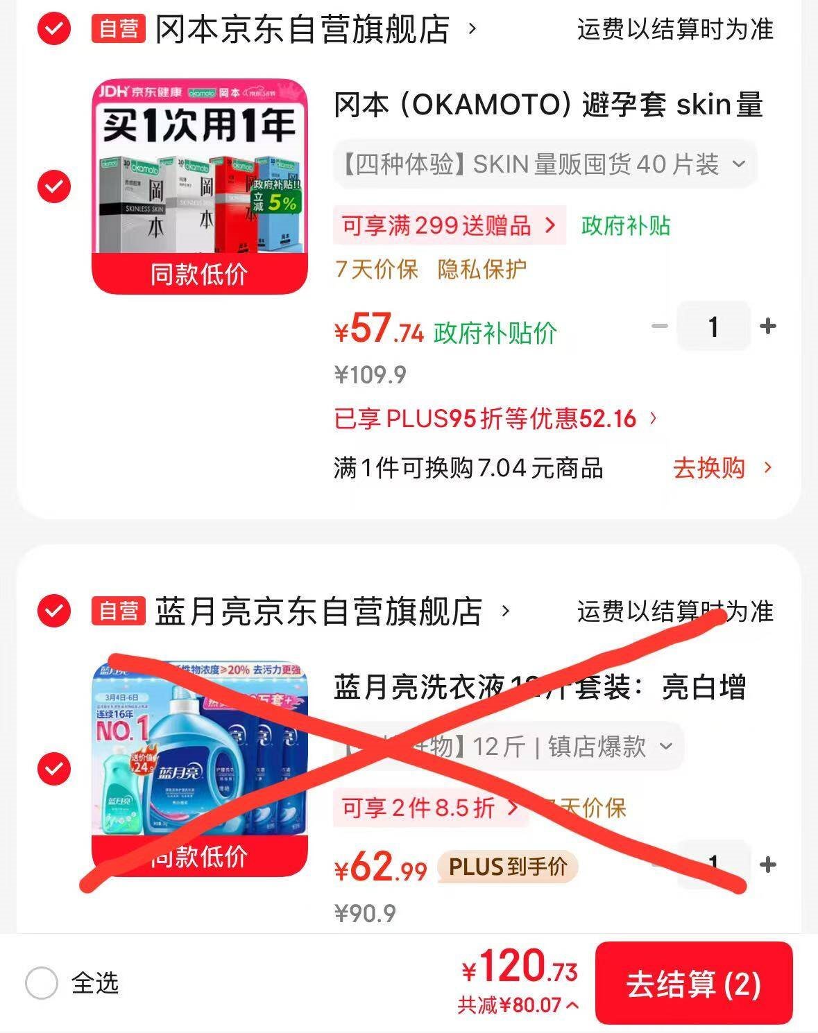 跳转APP冈本Plus实付57.7亓