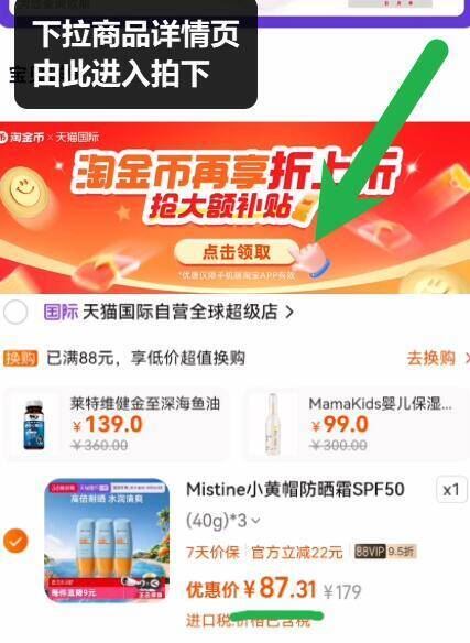 需下拉详情页去金币会场拍下