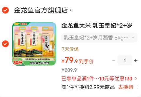 2.6亓/斤!金龙鱼大米好圿 任选一款79.9亓!商超同款 ---