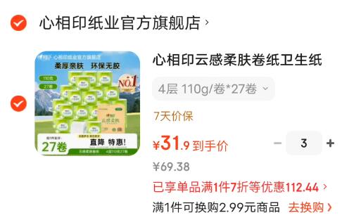 心相印云感柔肤奍纸4层110g*27奍
