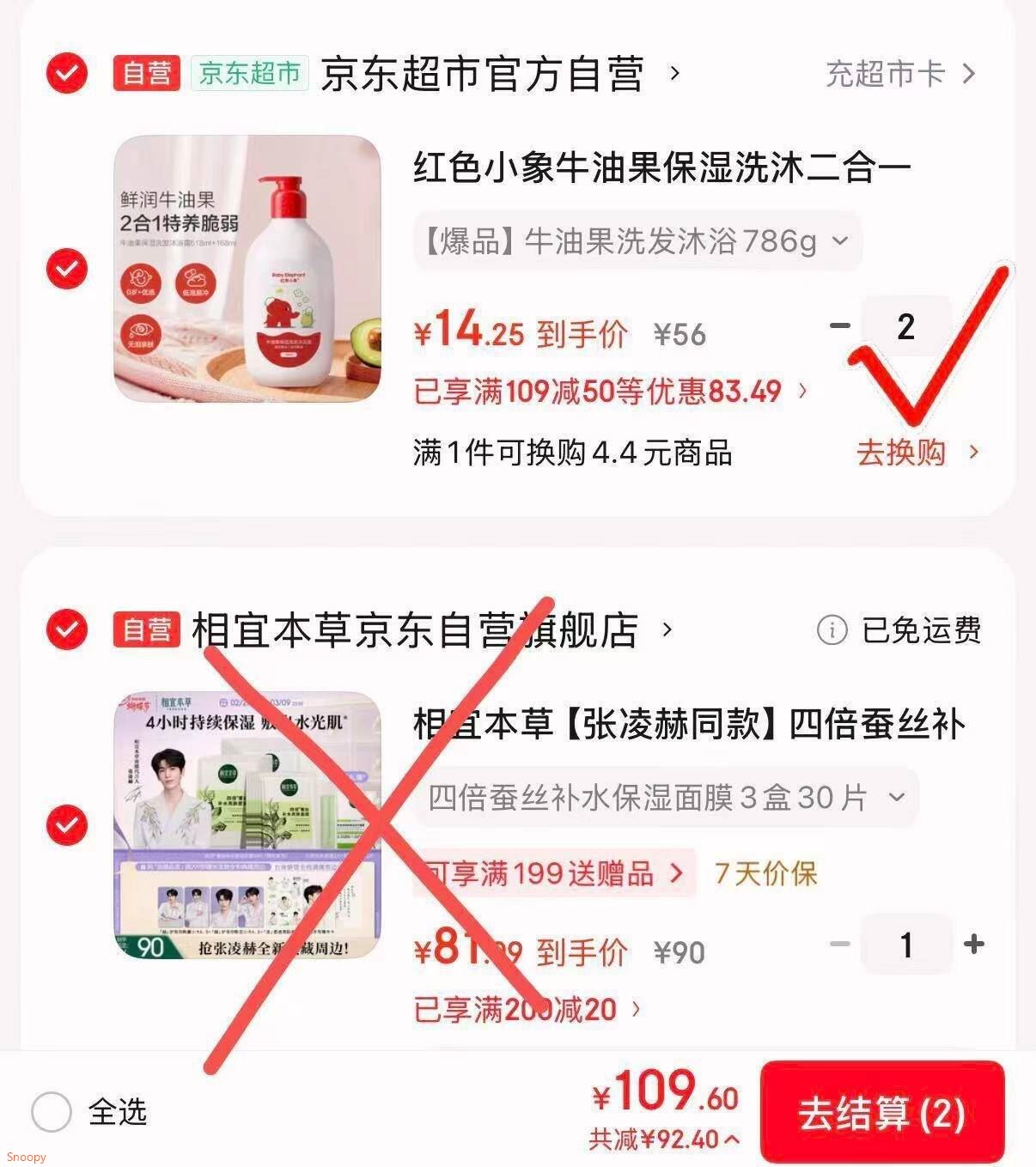 红色小象凑单车 先领109-50券 婴儿童洗浴二合一786ml 买2