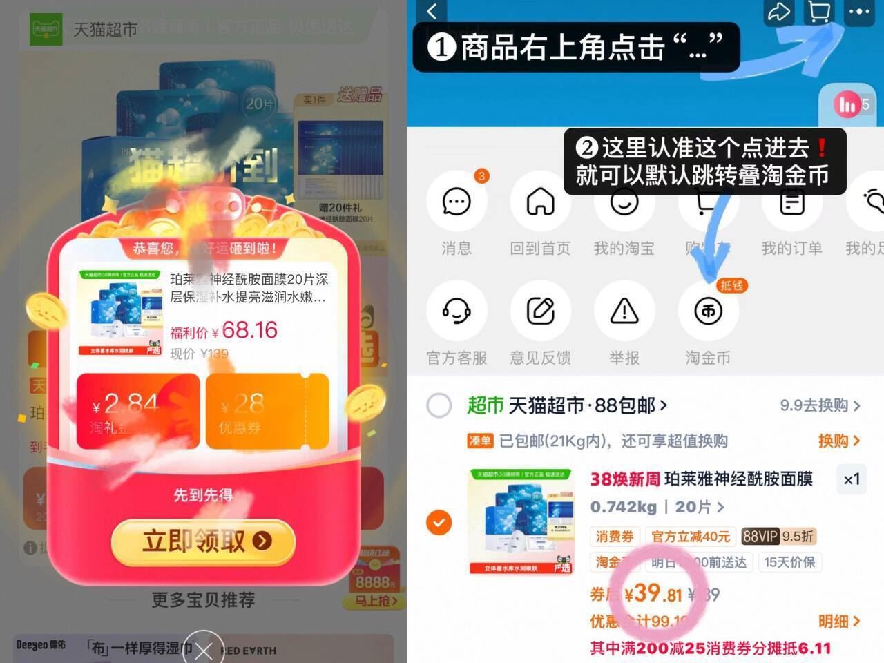珀莱雅面膜叠币加车 标题下领199-20超市券 -