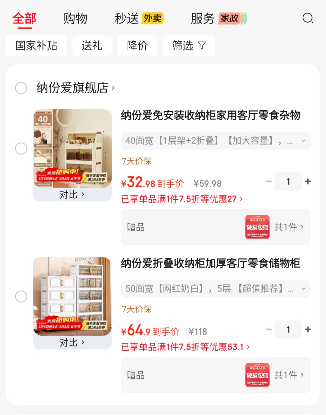 纳份爱 免安装收纳柜 40面宽 1层架 2折叠【32.9】