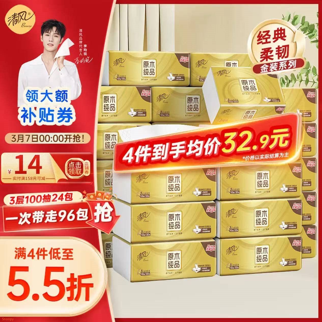 清风 金装抽纸3层100抽*24包