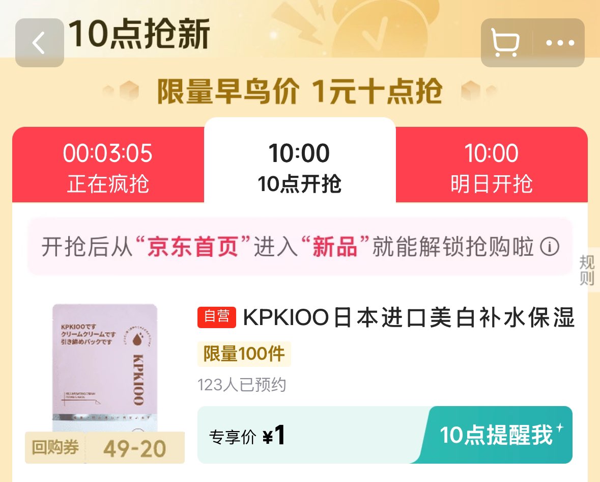 10点早鸟价 1亓 (京东首页-新品)