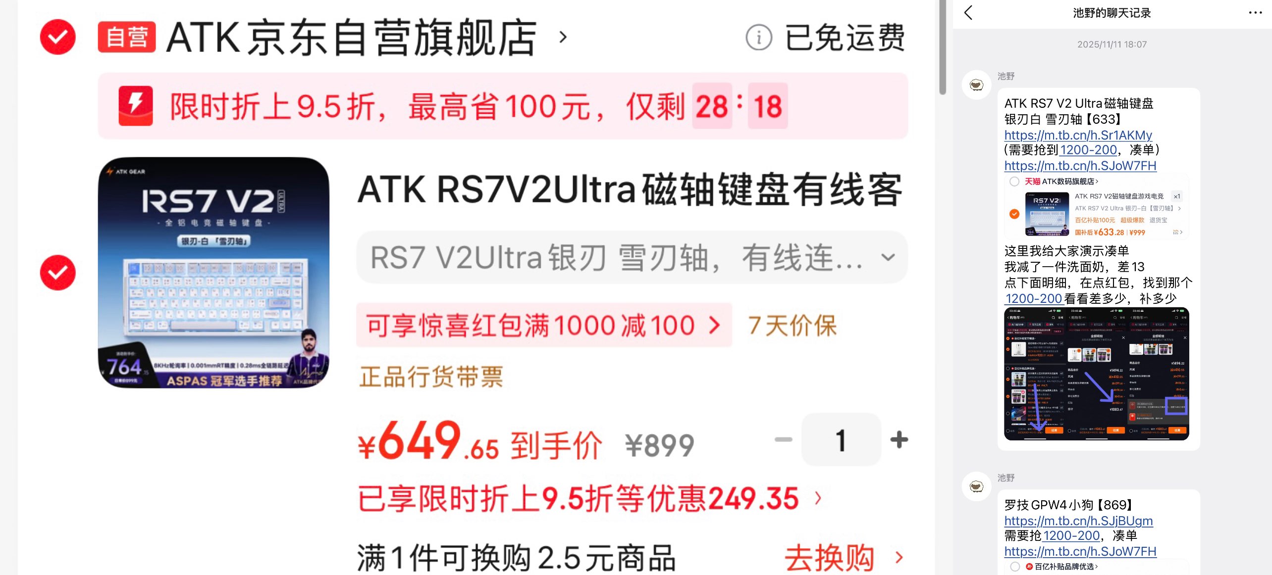 ATK RS7 V2Ultra磁轴键盘 银刃 雪刃轴 649 近史低 需要Plus积分兑换券800-80好单发报员2026年03月08日 14:330举报 ATK RS7 V2Ultra磁轴键盘银刃 雪刃轴【649】近史低https://u.jd.com/NarfVV8需要Plus积分兑换券800-80https://u.jd.com/NOrHR3L(淘宝双11百亿补贴价格在633左右)复制文案