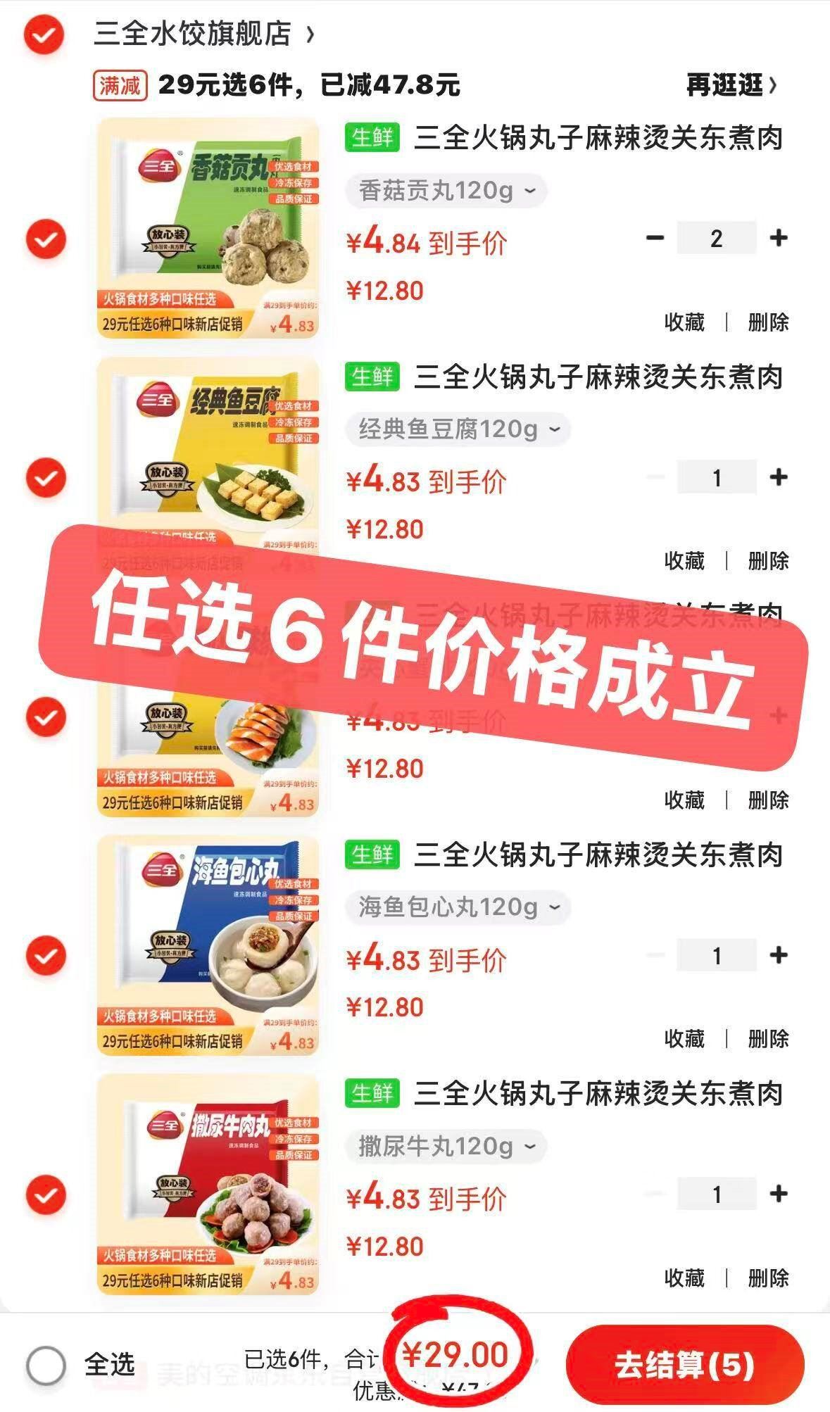 火锅食材任选車 三全 牛肉丸/鱼丸/脆骨丸等 任选6件29亓,折4.8亓/袋好单发报员2026年03月08日 15:030举报 ——火锅食材任选車——三全 牛肉丸/鱼丸/脆骨丸等https://u.jd.com/NgDacoP任选6件29亓,折4.8亓/袋*种类多样 轻松搞定火锅大餐复制文案